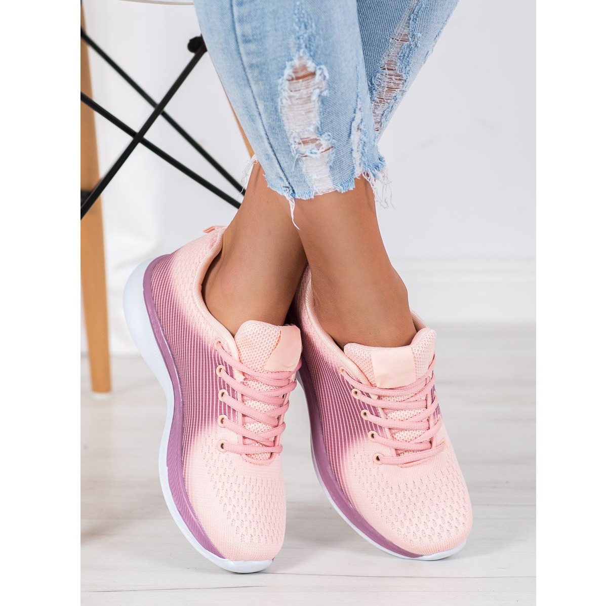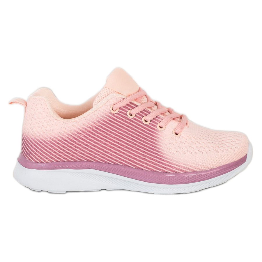 The upper of the sneakers with a rounded toe and a built-in, stiffened heel counter provides not only support but also a modern look. A lighter shade of pink on the front and heel adds lightness and subtlety, while the darker sides introduce contrast, emphasizing the unique design.