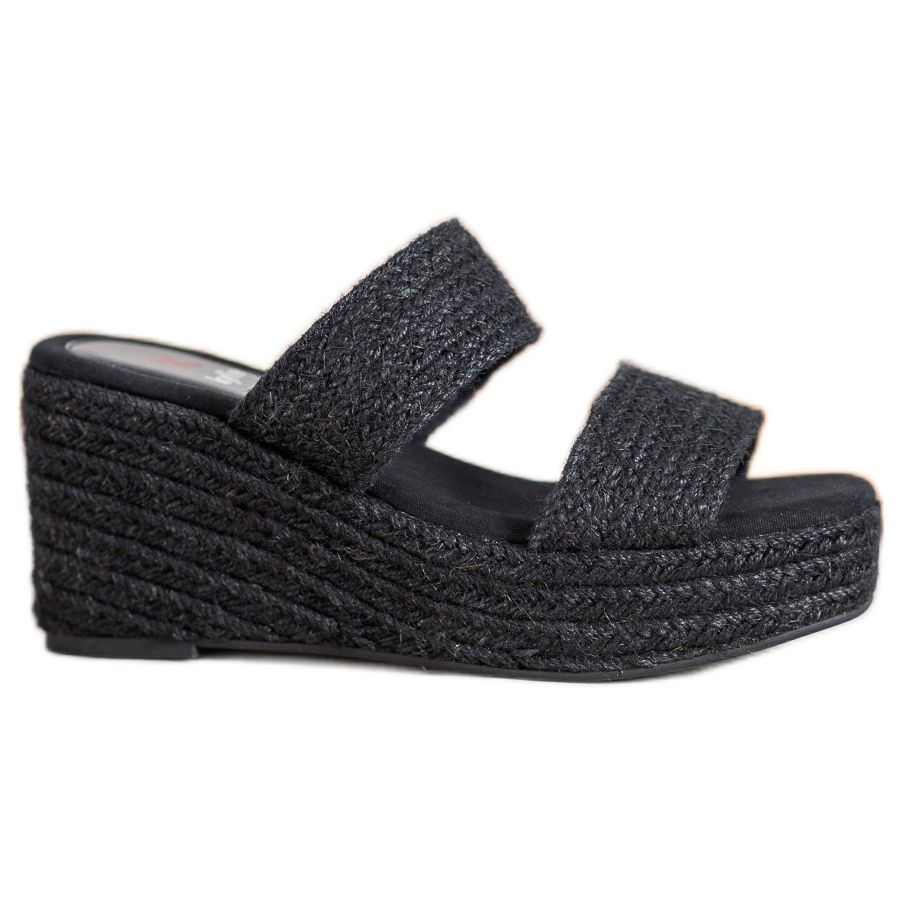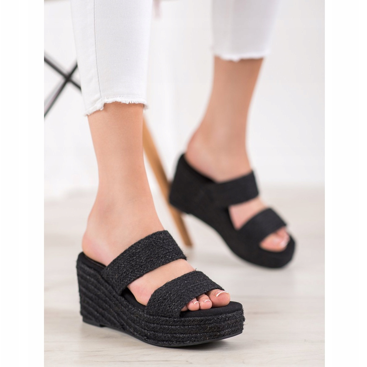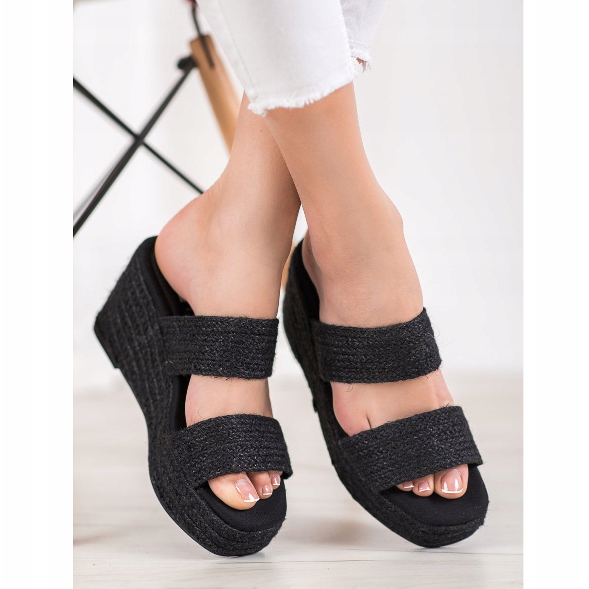 Discover comfort and style with lightweight wedge flip-flops from the Kylie brand! These elegant women's flip-flops in classic black are the perfect choice for warm days. Made of high-quality textile material with a string texture, they perfectly fit into the latest fashion trends.