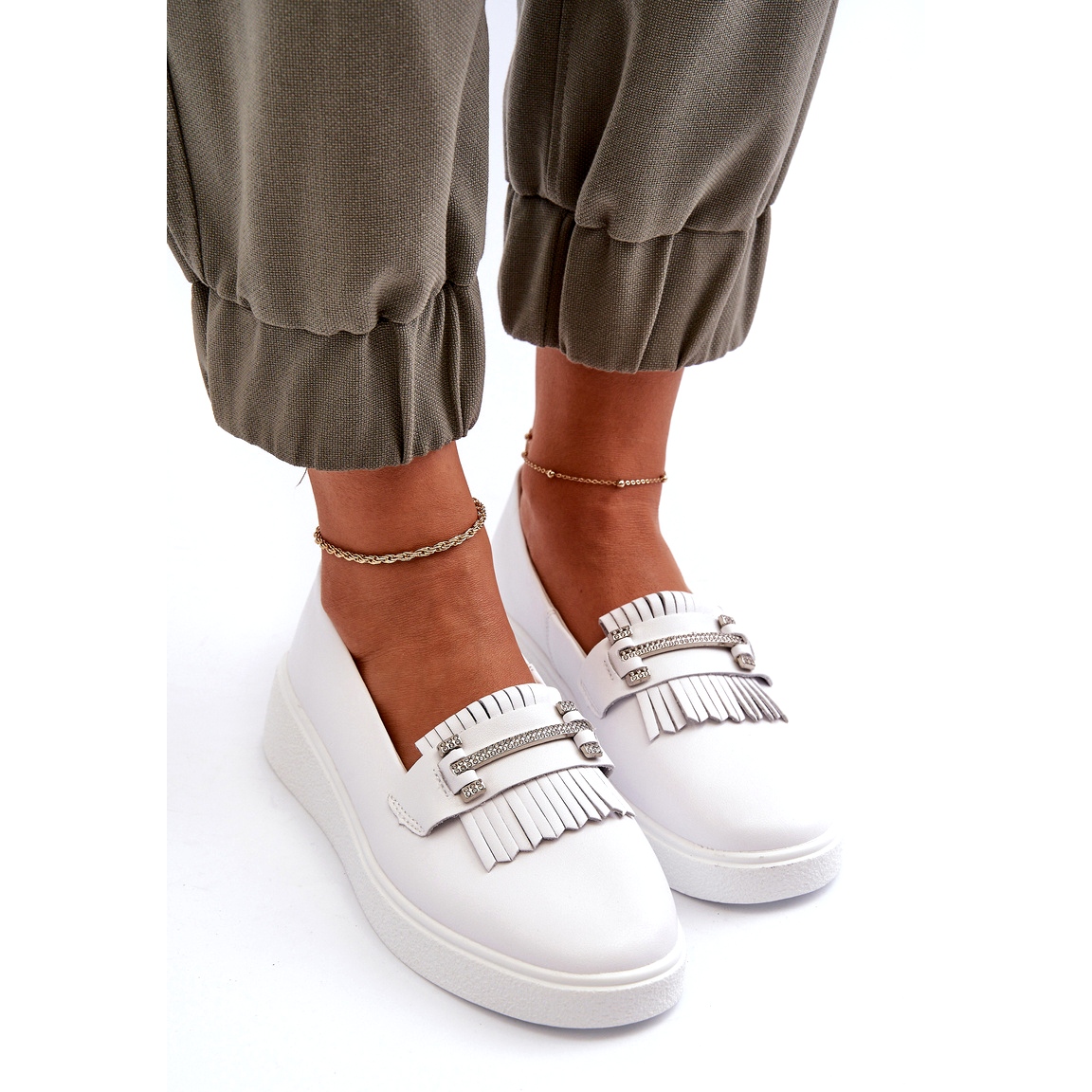 Discover lightweight women's leather loafers on the Białe S. Barski LR590 platform - a perfect combination of elegance, style and comfort every day. These unique shoes from the S. Barski brand are distinguished not only by high -quality leather upper, but also with original ornaments in the form of fringed and subtle zircons that give them a unique character.