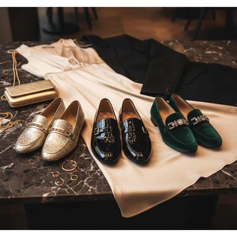 Loafers are also perfect for evening outings. Lacquered models in black or gold are suitable even for elegant parties.