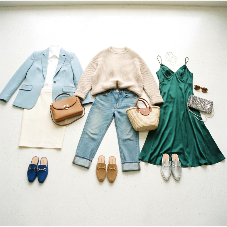 For larger occasions - metallic loafers with a midi dress in satin or silk is a combination invented by celebrity stylists. Minimalist dress + shiny shoes = sophisticated, exclusive look without excessive effort.