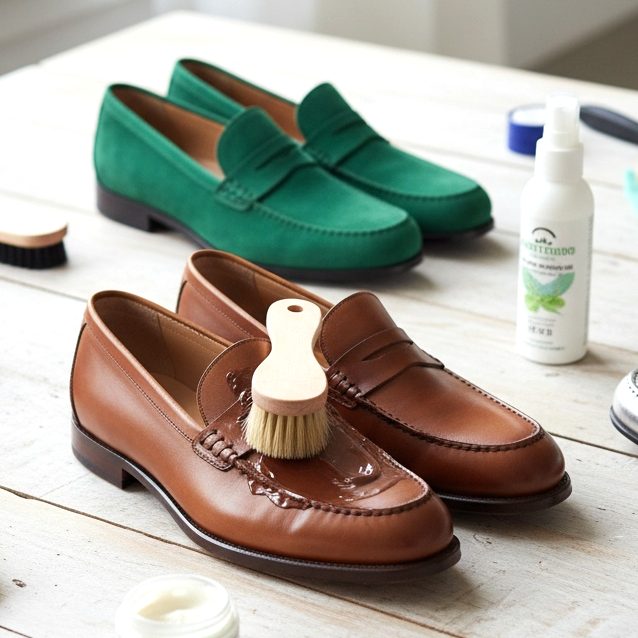 Loafers are shoes worth investing in, and good care will allow you to enjoy them for many seasons. In the case of leather models, regular polishing with a special cream preserves the elasticity of the material and prevents cracks. Impregnation with a waterproof spray is a mandatory step before wearing for the first time.