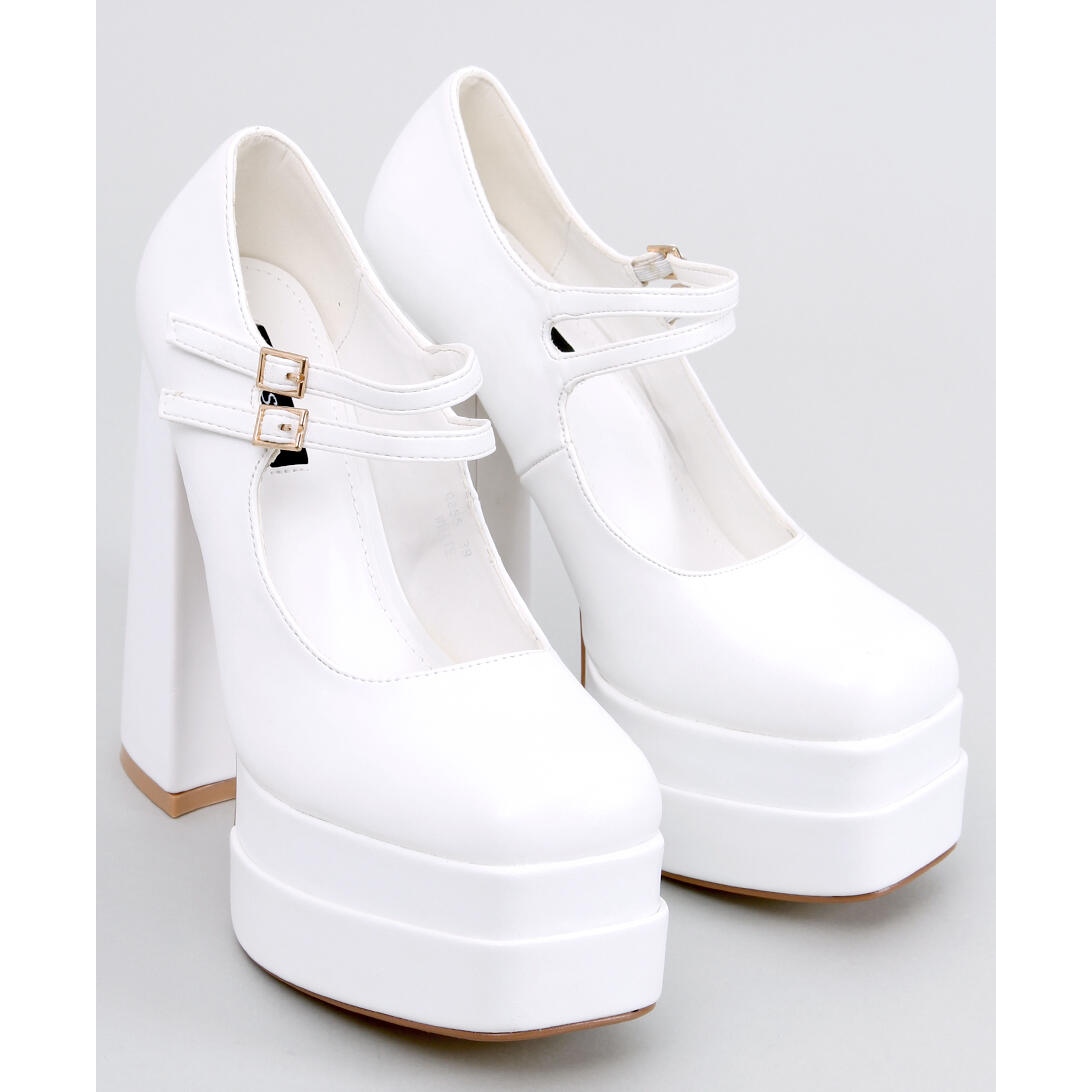 The white, smooth design of the pumps makes them a universal accessory that can be combined with a variety of colors and wardrobe styles. The simple but sublime design with a square toe will highlight both sophisticated dresses and casual, urban outfits.