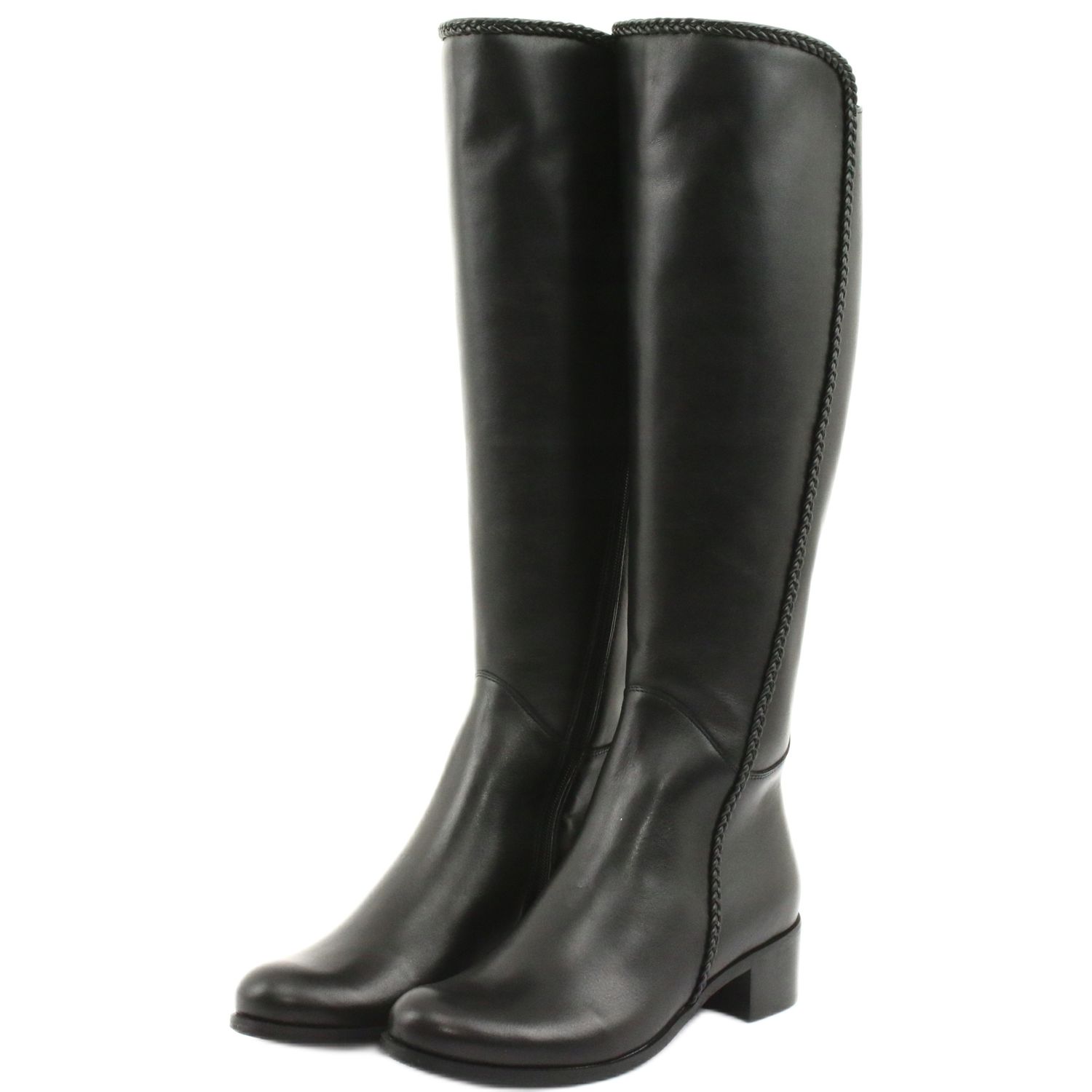 We present the Espinto 194 Darex long boots with braid in an elegant black color, which are a perfect combination of style, comfort and functionality. These unique boots are made of natural grain leather, which ensures not only high quality but also durability for years. Insulation made of soft and dense footwear fleece guarantees comfort of wearing even on colder days.
