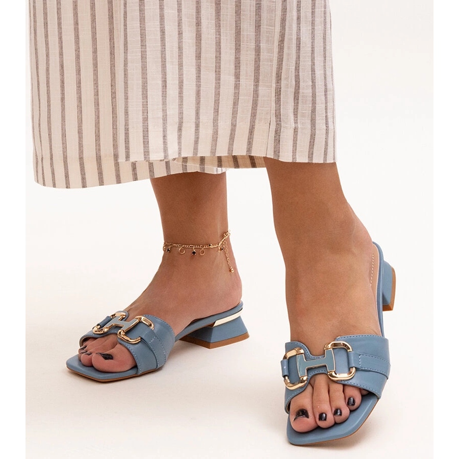 Inna marka Low-heeled flip-flops with a decorative Luara buckle blue