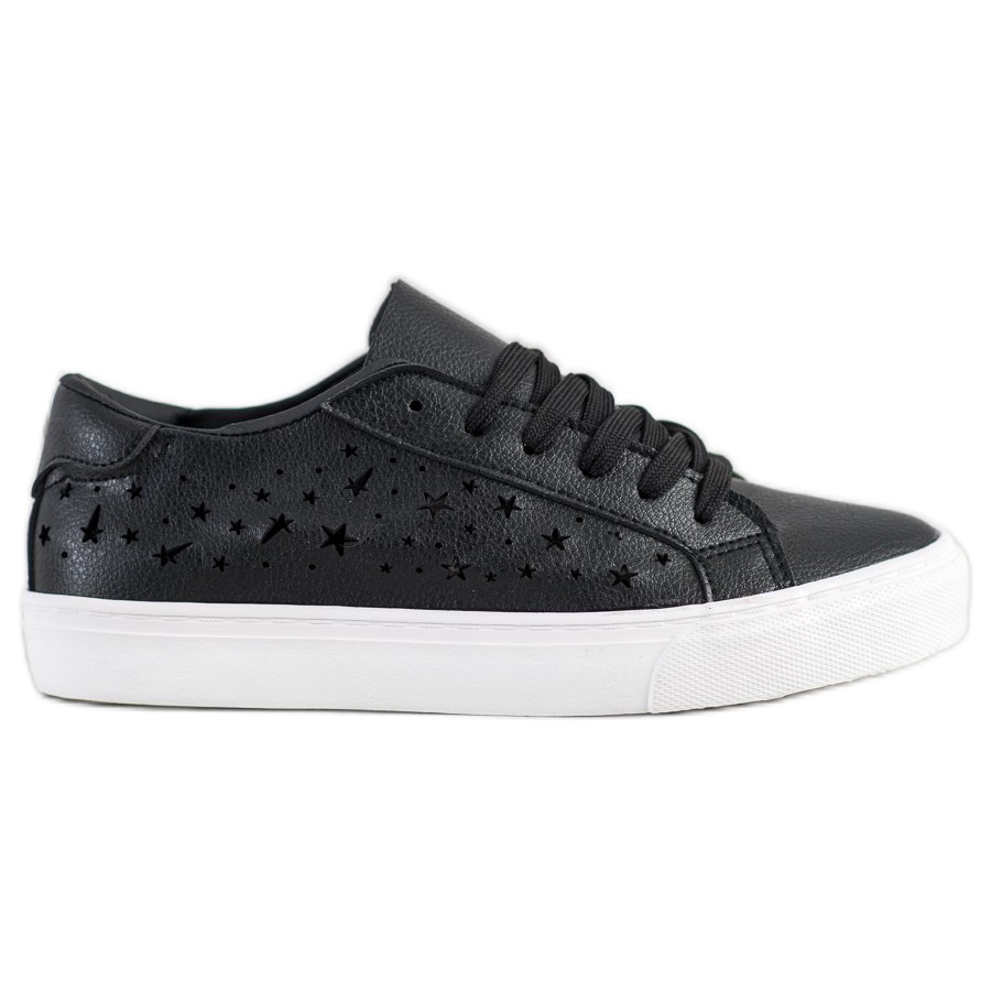 We present low sneakers with stars from the J. Star brand, which will delight every lover of fashionable and comfortable shoes. These stylish sneakers, in an elegant black shade, perfectly fit into the sporty style, and their openwork design gives them a unique character.