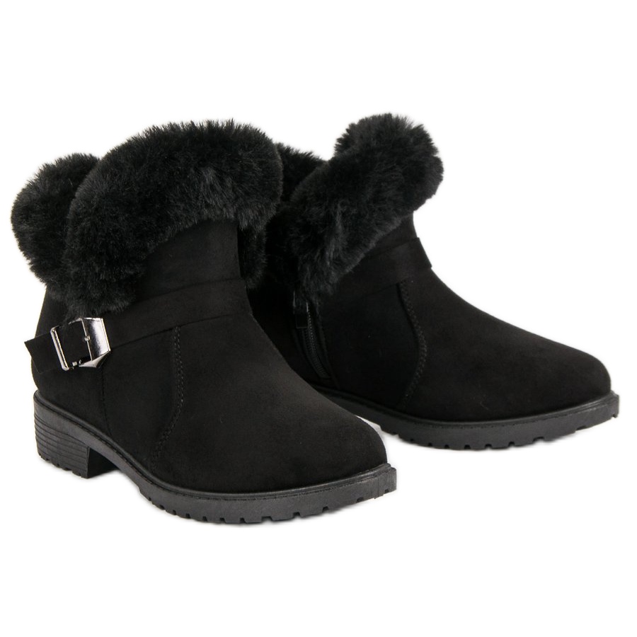 Discover comfort and style with our low, suede ankle boots in black. These elegant shoes, made of ecological suede, will be a great choice for winter walks. Insulated with fur, they will provide you with warmth and comfort even on colder days.