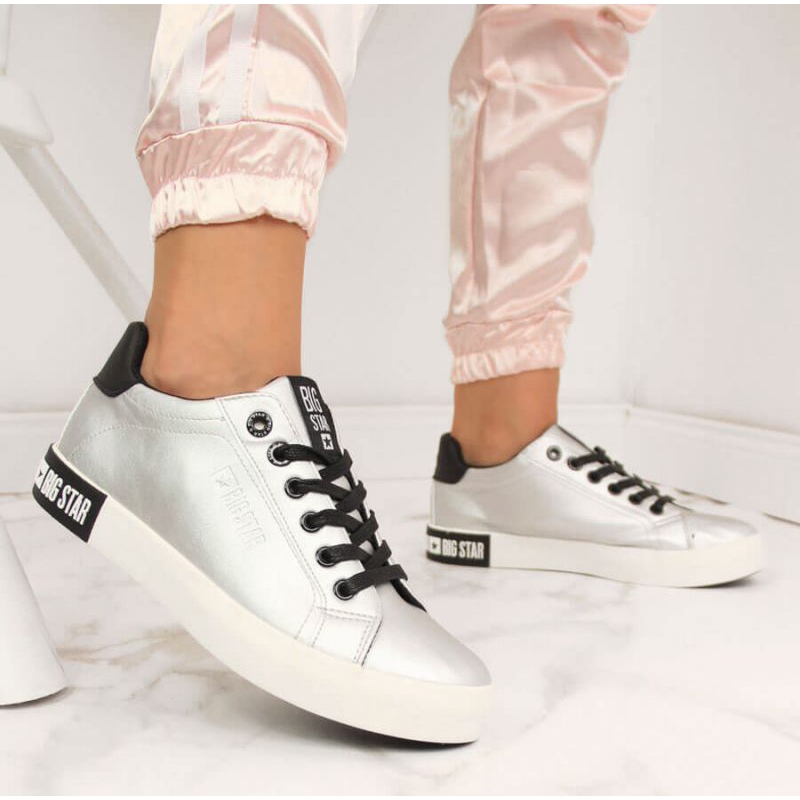 We present extraordinary low-top sneakers made of eco-leather Big Star W II274034 in a fashionable, silver color. These unique shoes, dedicated to women, are a great choice for everyday, combining style with comfort.