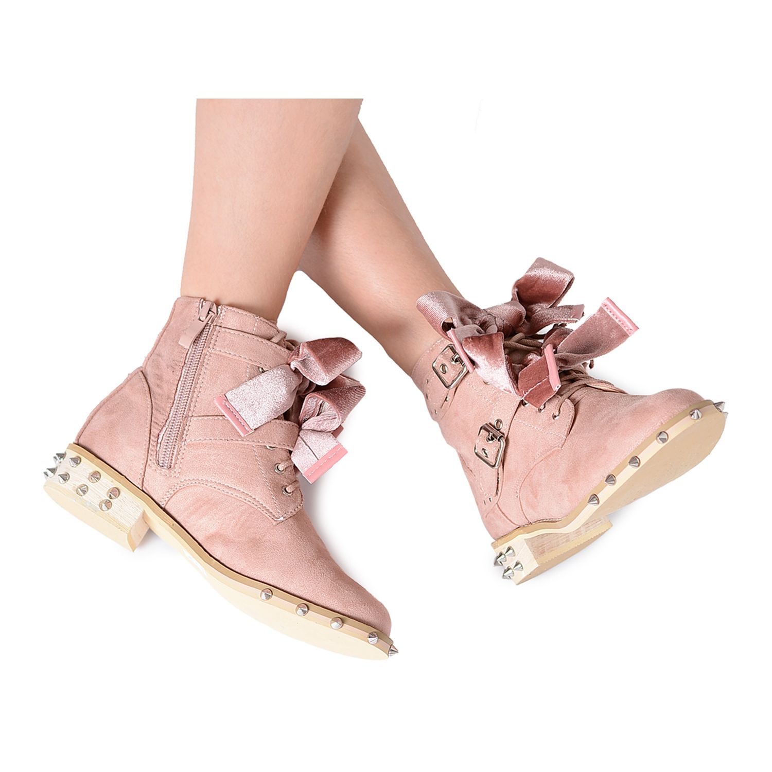 Details: Lu Boo | Children's Boots with studs bows LittleCamila Powder Pink