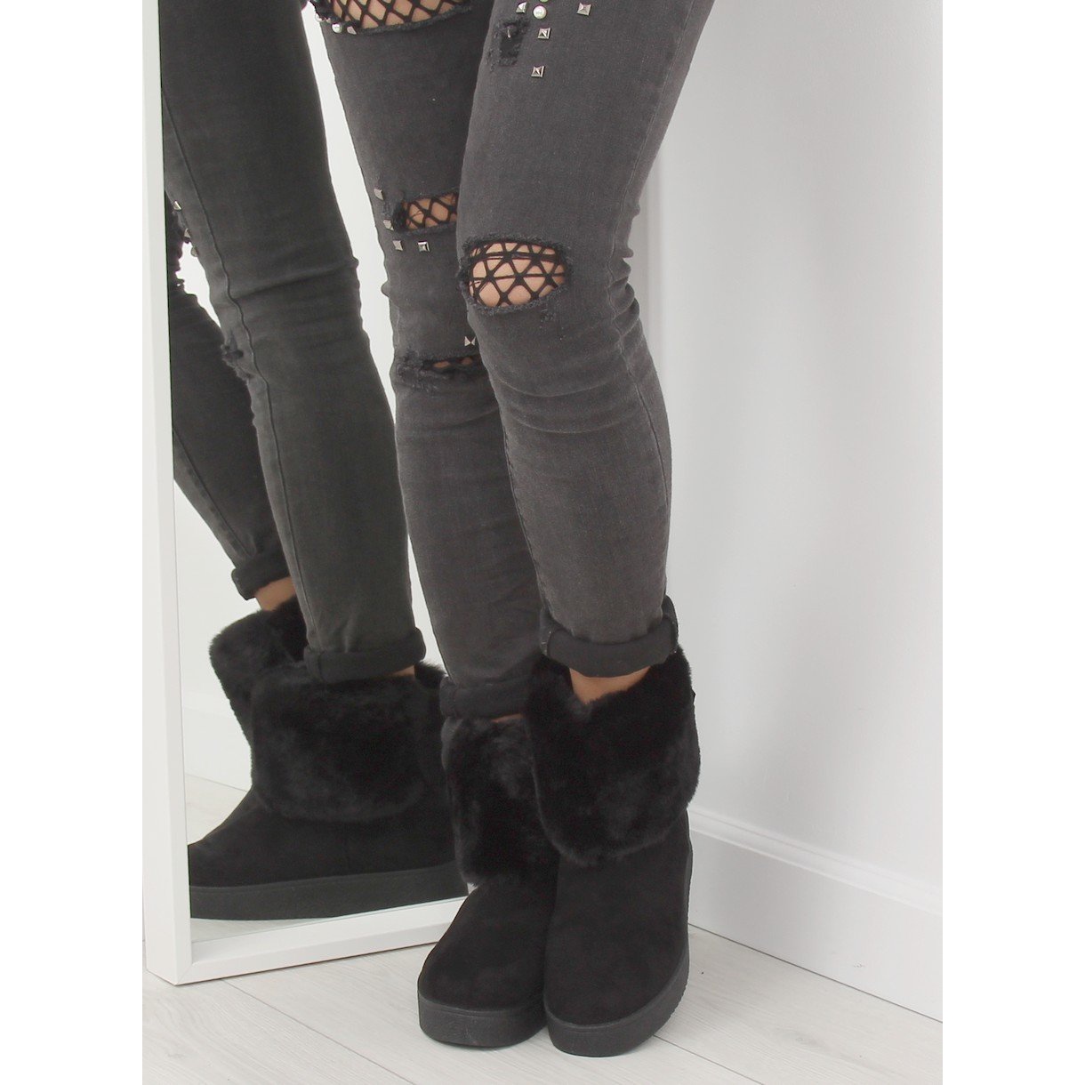 Women's black snow boots LV58 Black are the perfect choice for winter days, combining style with functionality. These elegant boots feature a charming bow and a shank decorated with pleasant to the touch fur, making them not only a fashionable but also comfortable choice.