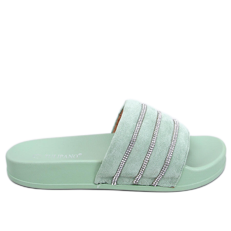 Lynne Green women's flip-flops in green are a great choice for women who value comfort and an elegant look. Made of ecological suede, these flip-flops are characterized not only by durability, but also by a delicate, pleasant to the touch material. The model captivates with a shiny zircon application, which gives them a unique charm and makes them ideal for summer days.
