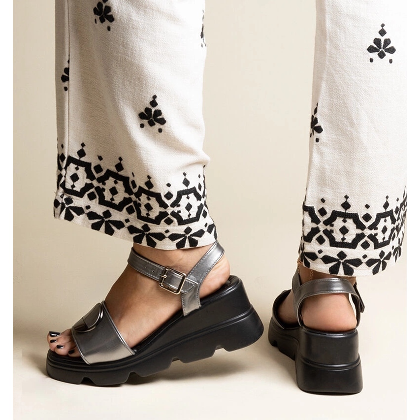 A tall wedge with a height of 7 cm not only adds you a few centimeters tall, but also makes you look elegant. The silvery color "gun" in combination with a black plastic sole makes these sandals extremely versatile - ideal for many summer stylizations, both on a daily basis and for special occasions.