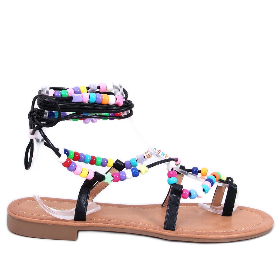 The Maios Black sandals are distinguished by their spectacular lacing around the ankle, which emphasizes the legs, giving them lightness and chic. Colorful beads add a unique character to the shoes, making them the perfect complement to both everyday and more elegant styles.