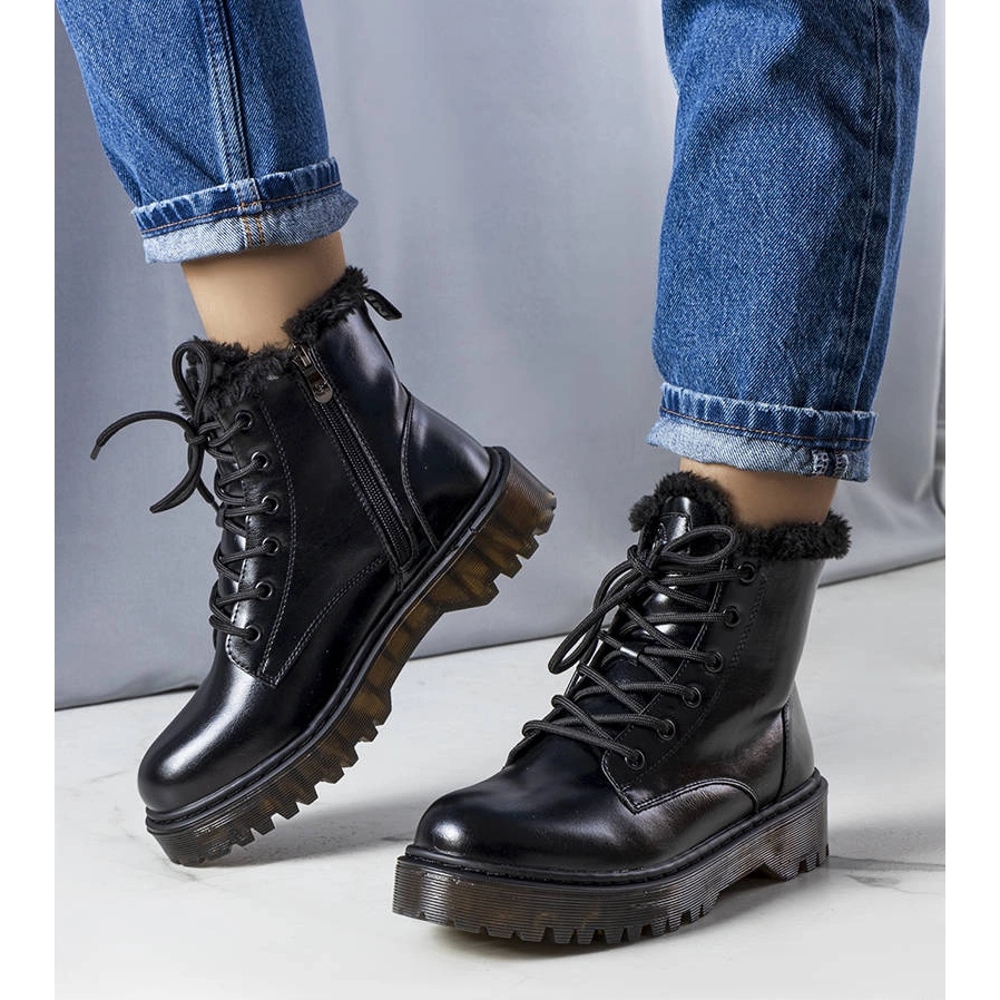 Classic, black martola trappers are the perfect boots for a winter wardrobe - they combine a durable, fashionable cut with pleasant warmth inside. The upper made of high -quality ecological leather provides an elegant look and ease of care, and the soft fur inside guarantees comfort even at low temperatures. The model with lacing and a practical castle makes the shoes comfortable to put on and perfectly adapt to the foot.
