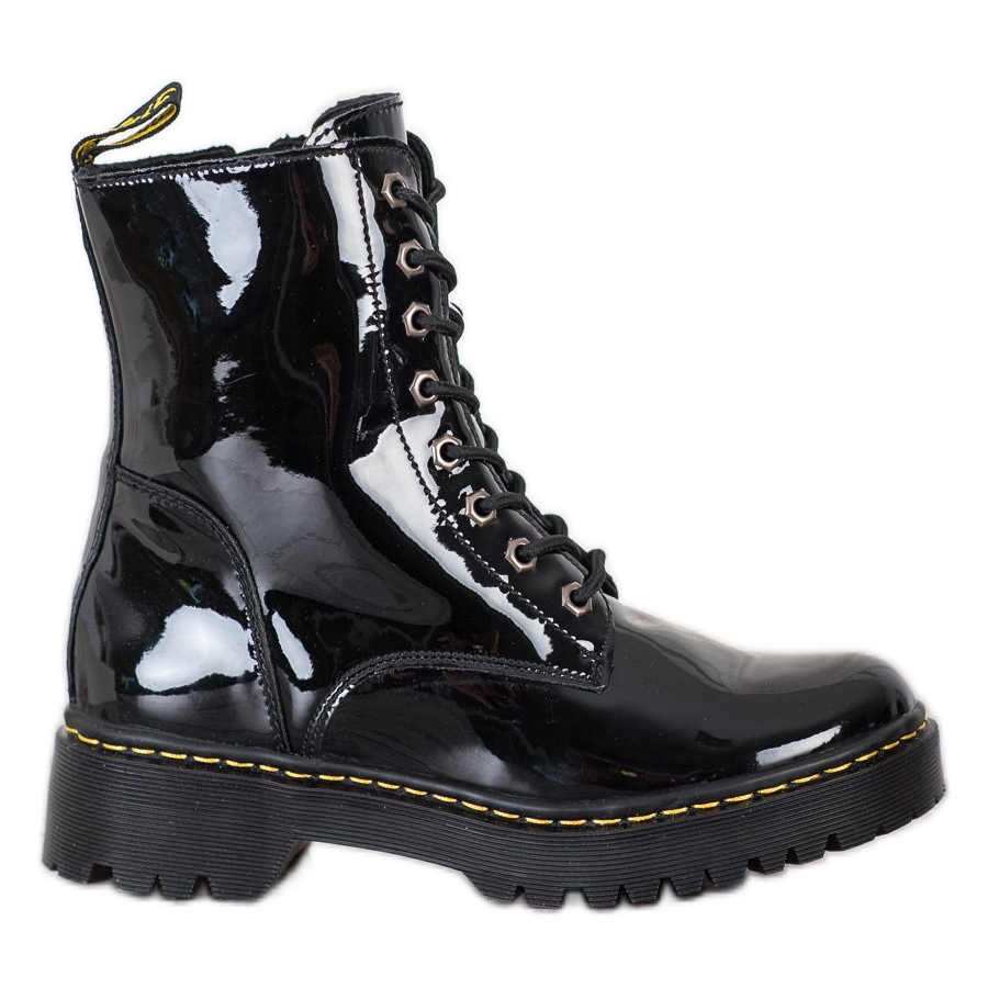 Add a touch of edginess and unique style to your wardrobe with the black leather MCKEY combat boots. These fashionable women's shoes combine the elegance of patent leather with functionality, making them the perfect choice for bold women who want to stand out from the crowd.