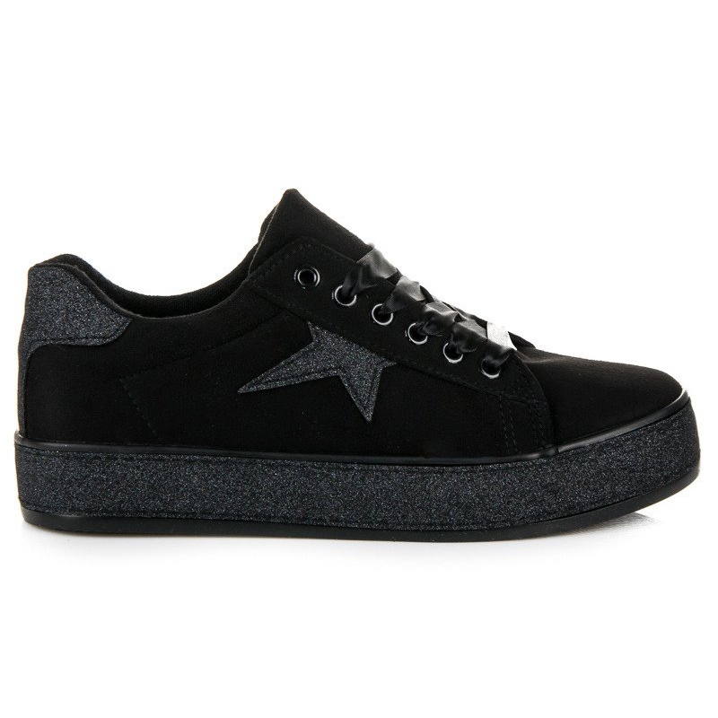MCKEYLOR black glitter sneakers are the perfect choice for women who want to combine style with comfort. These women's sports shoes are perfect for everyday use, allowing you to move freely throughout the day. Made of high-quality leather-like material, they offer not only an aesthetic appearance, but also durability, making them a great choice for lovers of fashionable footwear.