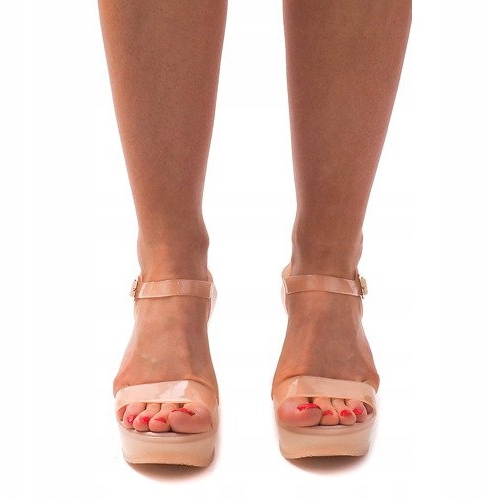 The 9 cm platform height not only makes you gain a few centimeters in height, but also provides extraordinary comfort when walking. The synthetic sole and different material of the insole guarantee comfort of wearing all day long. The lack of a toe additionally emphasizes the lightness and freedom of these summer shoes.