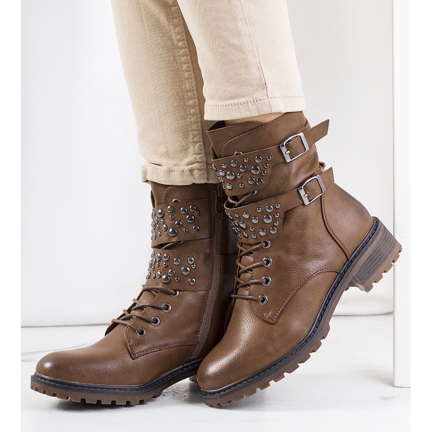Brown Menez women's boots are the perfect choice for the fall and winter season, combining a fashionable look and functionality. These stylish boots feature a high-quality eco-leather upper, which is decorated with an eye-catching studded strap that adds originality. Comfortable lacing allows for a perfect fit to the foot, and the zipper makes putting on and taking off the shoes quick and easy - perfect for everyday wear.