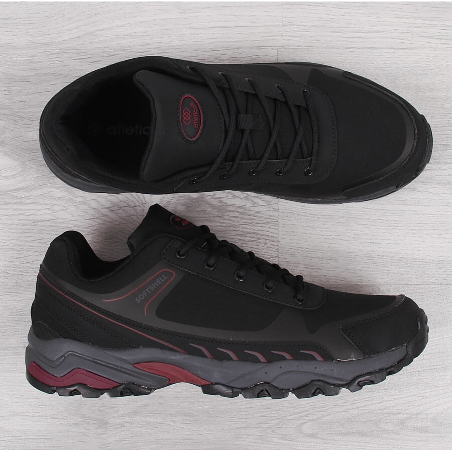We present the men's waterproof trekking shoes black and red by Atletico, which are the perfect combination of style, comfort and functionality. Made of high-quality SOFTSHELL material, these shoes provide excellent protection against wind and water, while allowing the skin to breathe. Thanks to the innovative properties of the material, moisture remains under control, which increases the comfort of use in various weather conditions.