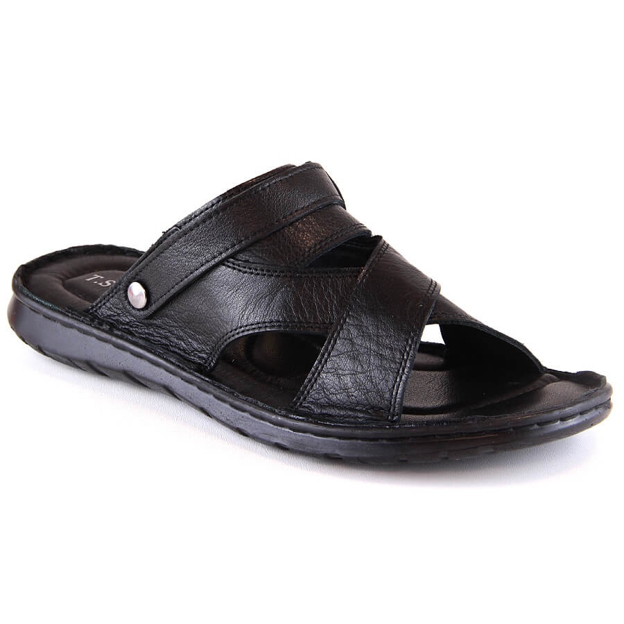 T.Sokolski Men's black leather flip-flops sandals T.Sokolski LM20-02