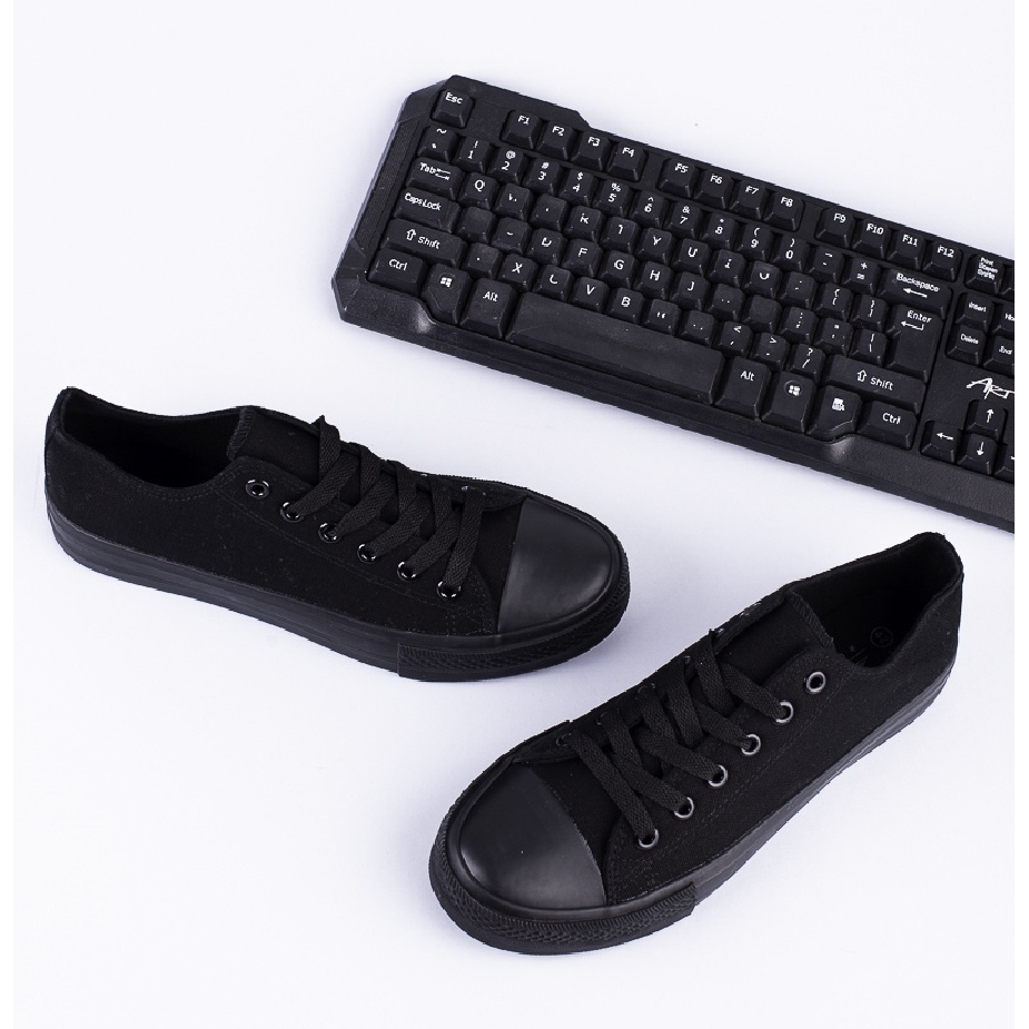 Black sneakers stand out with their full toe and low height, which adds elegance. The sole with a tread made of synthetic materials guarantees proper grip and durability, regardless of weather conditions. Thanks to the lace-up version, you can perfectly adjust them to your foot, which provides additional comfort.