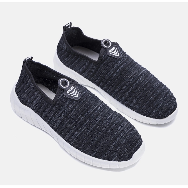 Black men's sock sneakers original (model #5) - light, comfortable and universal shoes ideal for an active day. A flexible, airy upper in the form of a "sock" allows for quick putting on, and additional binding allows you to perfectly fit to the foot. The white, rubber sole provides adhesion and cushioning, and the fabric fabric insert increases the comfort of use.
