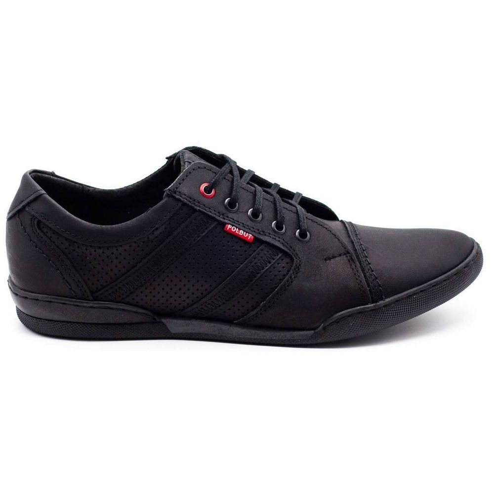 Polbut Casual R3 Perforation - men's shoes made of natural leather (black)
