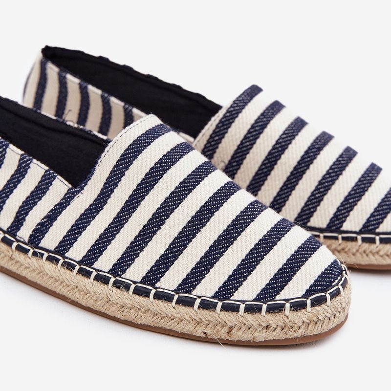 Discover male espadrilles from textile material in fashionable shades of navy blue and blue, perfect for warm summer days. These stylish shoes are distinguished by a striped pattern, which gives them a light, holiday character, perfectly matching with casual stylizations.