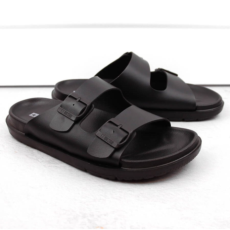 Discover the perfect flip-flops for the summer - men's foam flip-flops with buckles from the Big Star brand. The NN174597 model in classic black is a great choice for men who value comfort and style. Made of high-quality synthetic materials, the flip-flops ensure durability and comfort of wearing.