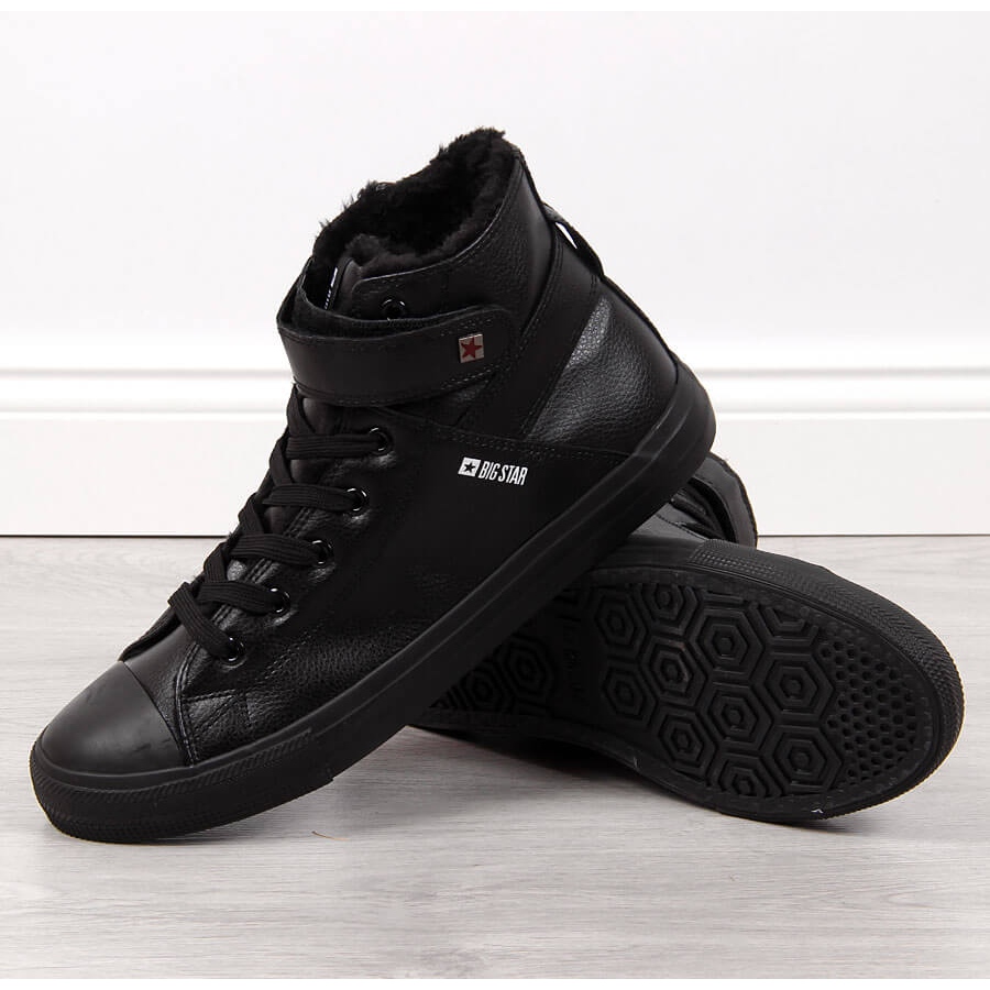Big Star insulated sneakers are a combination of urban style and practical comfort for cooler days. Made of organic leather in a universal black color, with a soft lining and a fur insert - they provide warmth and comfort during autumn and winter. The higher upper (about 12.5 cm) protects the ankle well, and the 2.5 cm rubber sole gives some holding and cushioning.