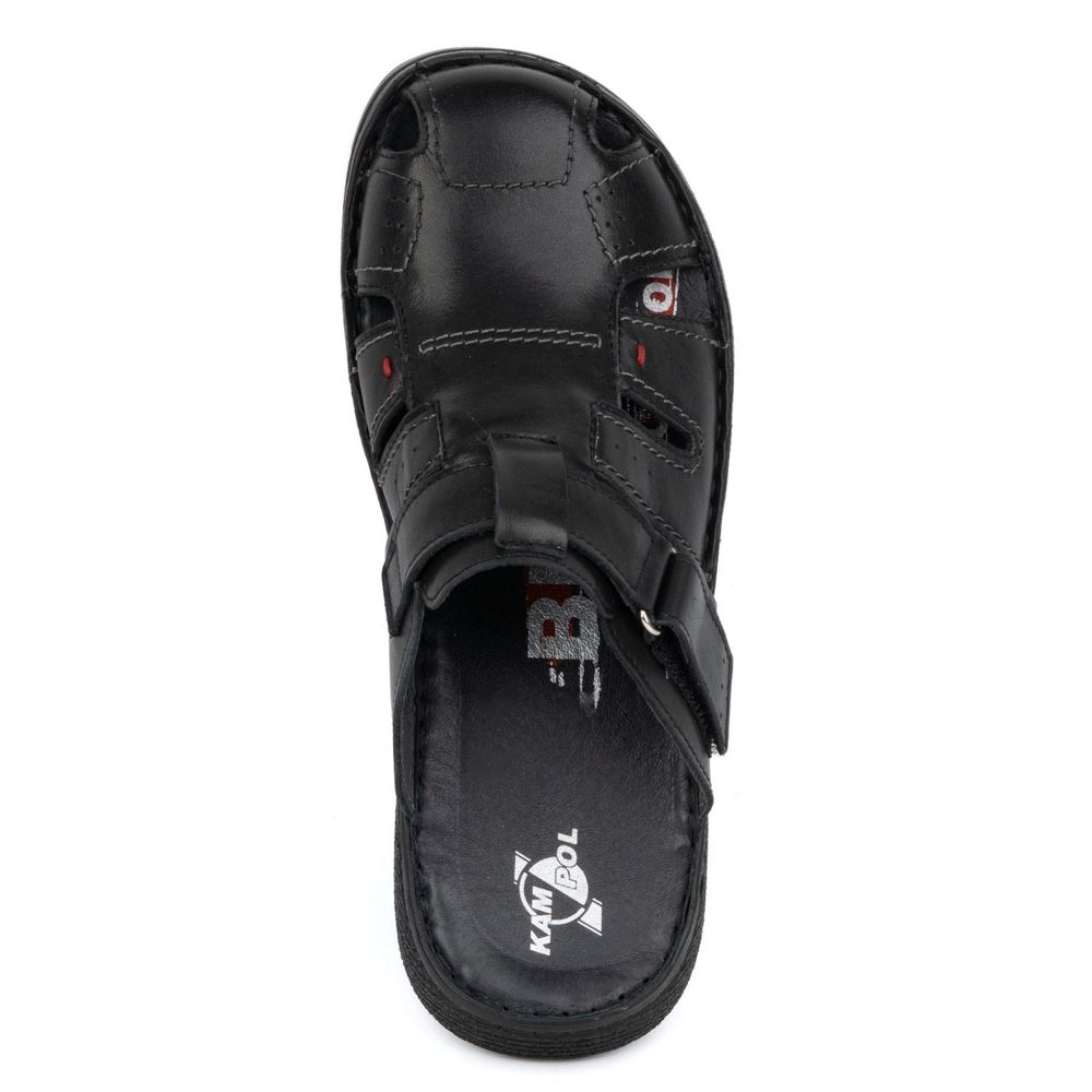 Kampol Men's leather flip-flops KAMPOL Polish thick 221KAM black