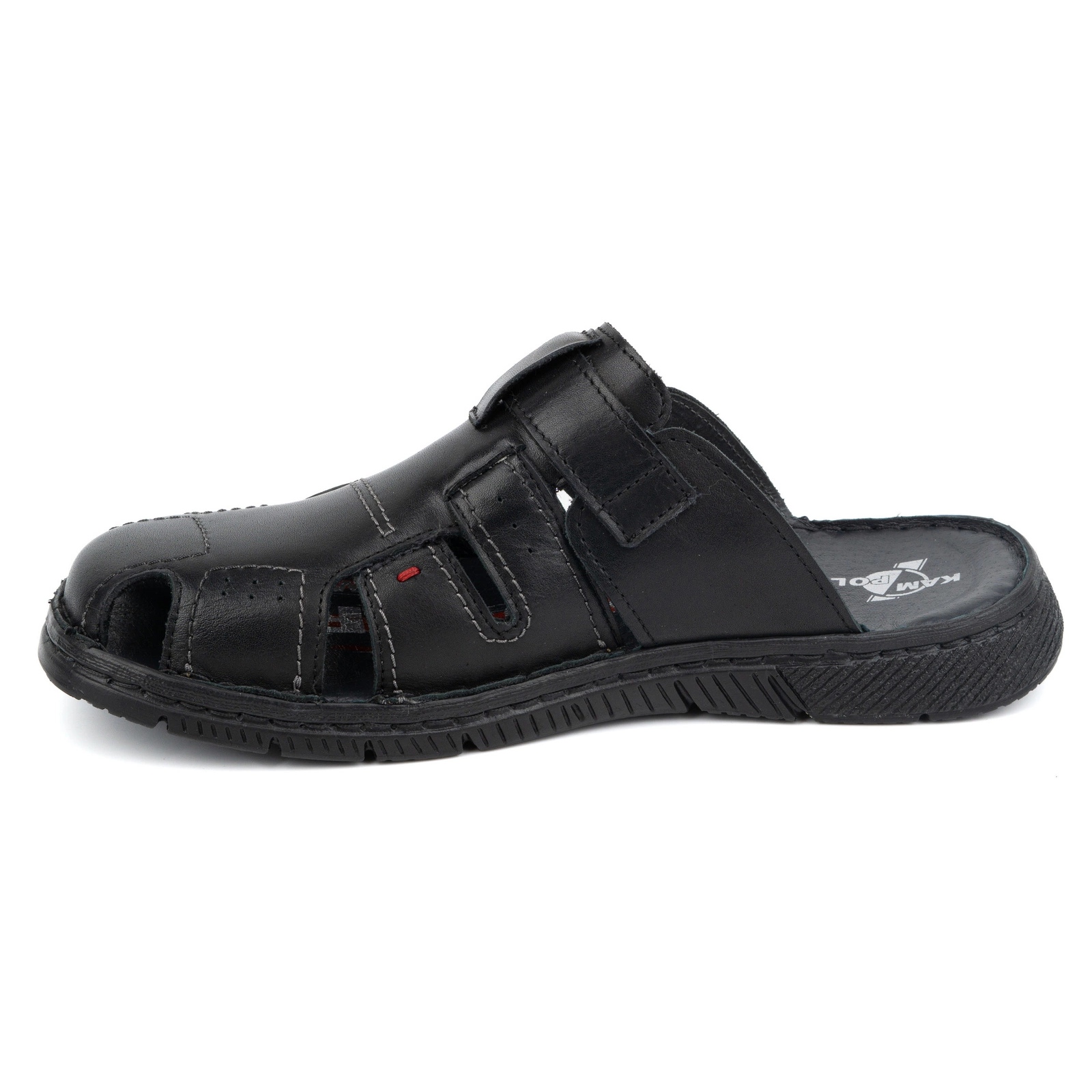 Details: Men's leather flip-flops KAMPOL Polish thick 221KAM black