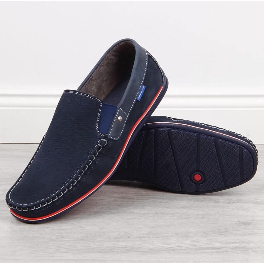 Details: Men's leather loafers slip on navy blue Gregor
