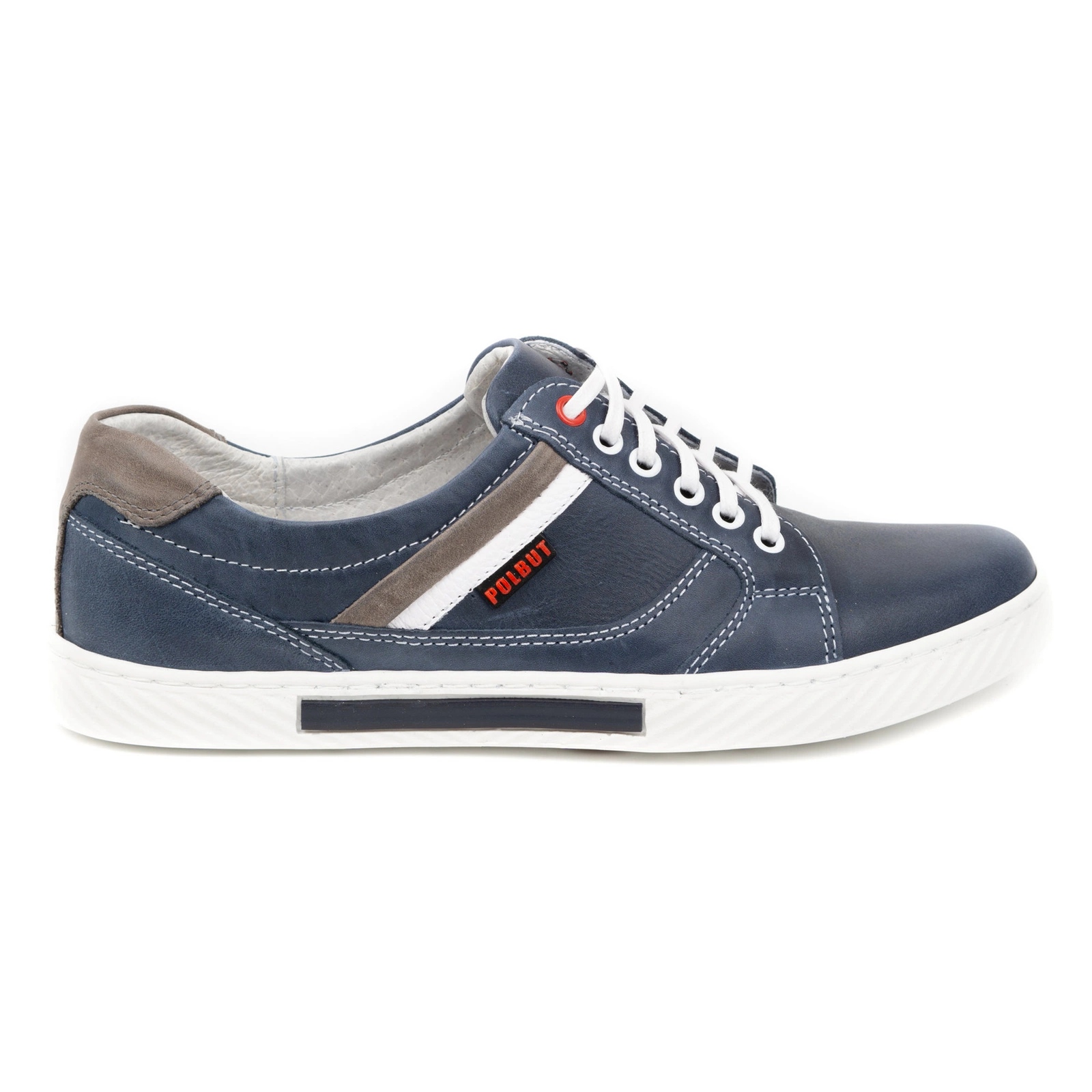 Details: Polbut Men's leather shoes J47, navy blue and gray multicolored