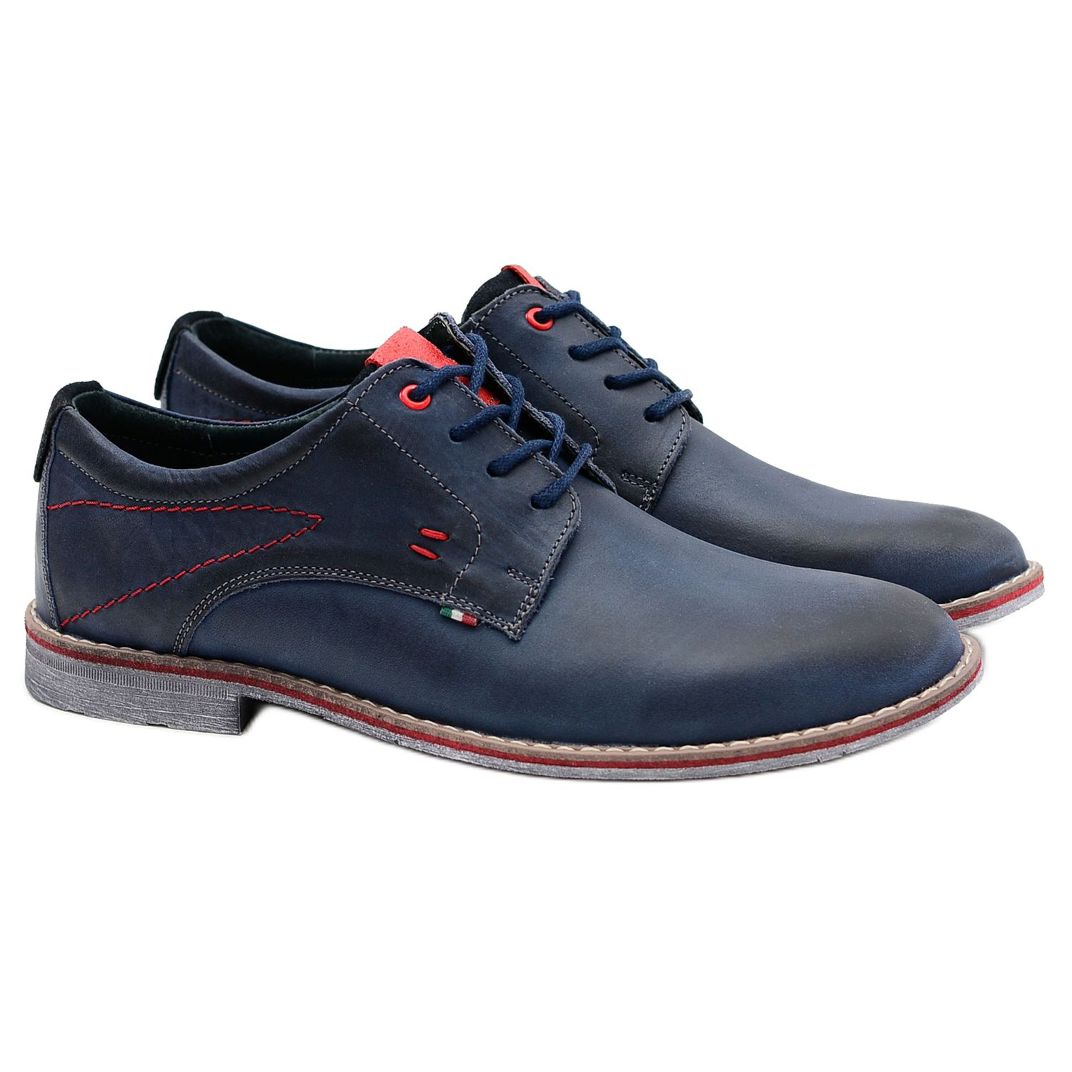 Discover a classic in a modern edition with navy blue men's leather Falado shoes from the renowned KOMODO brand. These unique shoes combine the latest trends with a timeless style. The rounded toe and traditional lacing make them an ideal choice for both everyday and less formal occasions. Red stitching adds character, making them stand out from other models.