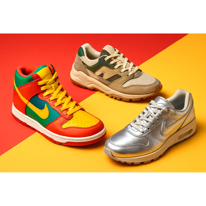 Bright colors - red, green, yellow, blue. Nike Dunks, Jordan 1, New Balance colorful. Statement pieces. Is it worth it? Only if you are confident and like to stand out. Difficult to fit into most styles.