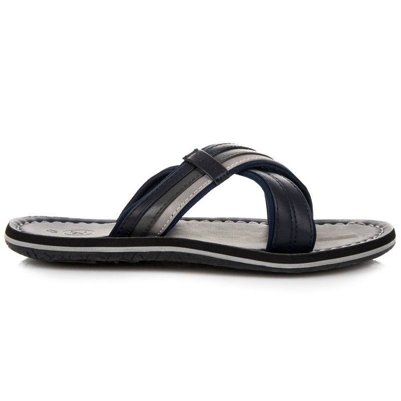 Classic, universal men's flip-flops from Mckeylor in an elegant, deep shade of blue. Made of high-quality ecological leather inside and out, they combine the comfort of everyday use with an aesthetic, modern look. The lack of a pattern and simple cut make them suitable for many summer styles - from the beach, through a walk around the city, to relaxing at home.