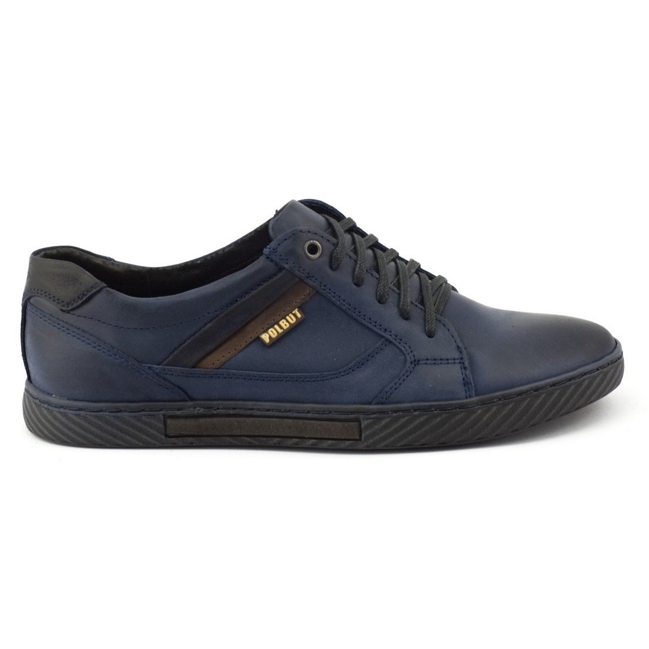 Polbut J47 - Men's Navy (navy blue) sports shoes combine the comfort of everyday footwear with an elegant, timeless look. The upper made of grain natural leather is easy to care for, and the leather insert ensures good air circulation and wearing comfort all day. The flexible sole adapts to the shape of the foot, and the laced clasp gives the model a sporty character with a hint of classics - great for jeans and casual stylizations.