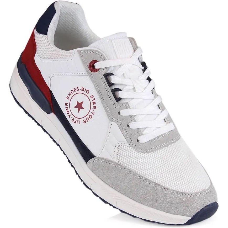 We present the men's sports shoes Big Star LL174255 101 in an elegant, white color - a great choice every day! These sneakers combine modern design and functionality, which makes them ideal for every casual stylization, blending well with both jeans and sports shorts.