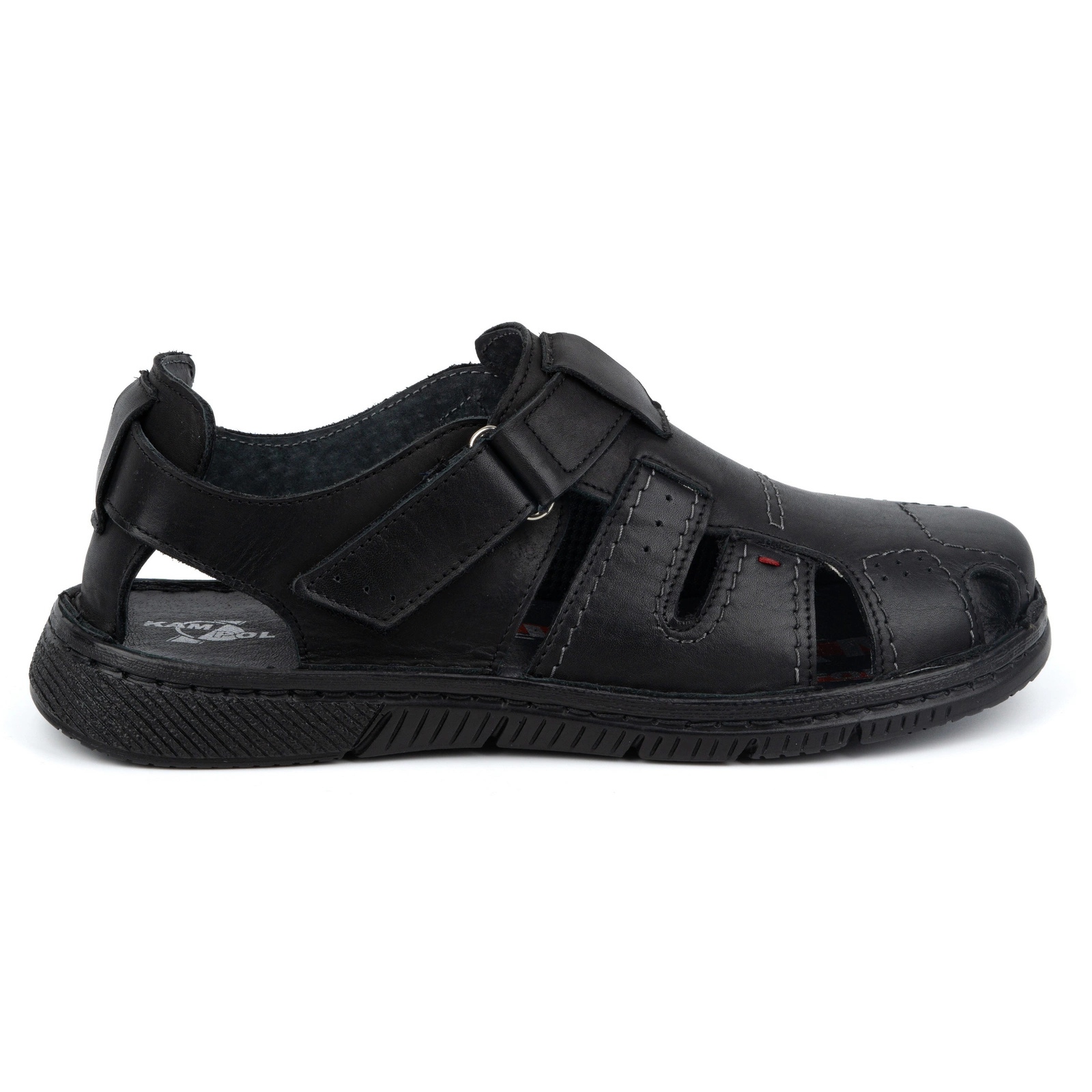 Details: Kampol Men's Velcro Leather Sandals 222 Kam Black