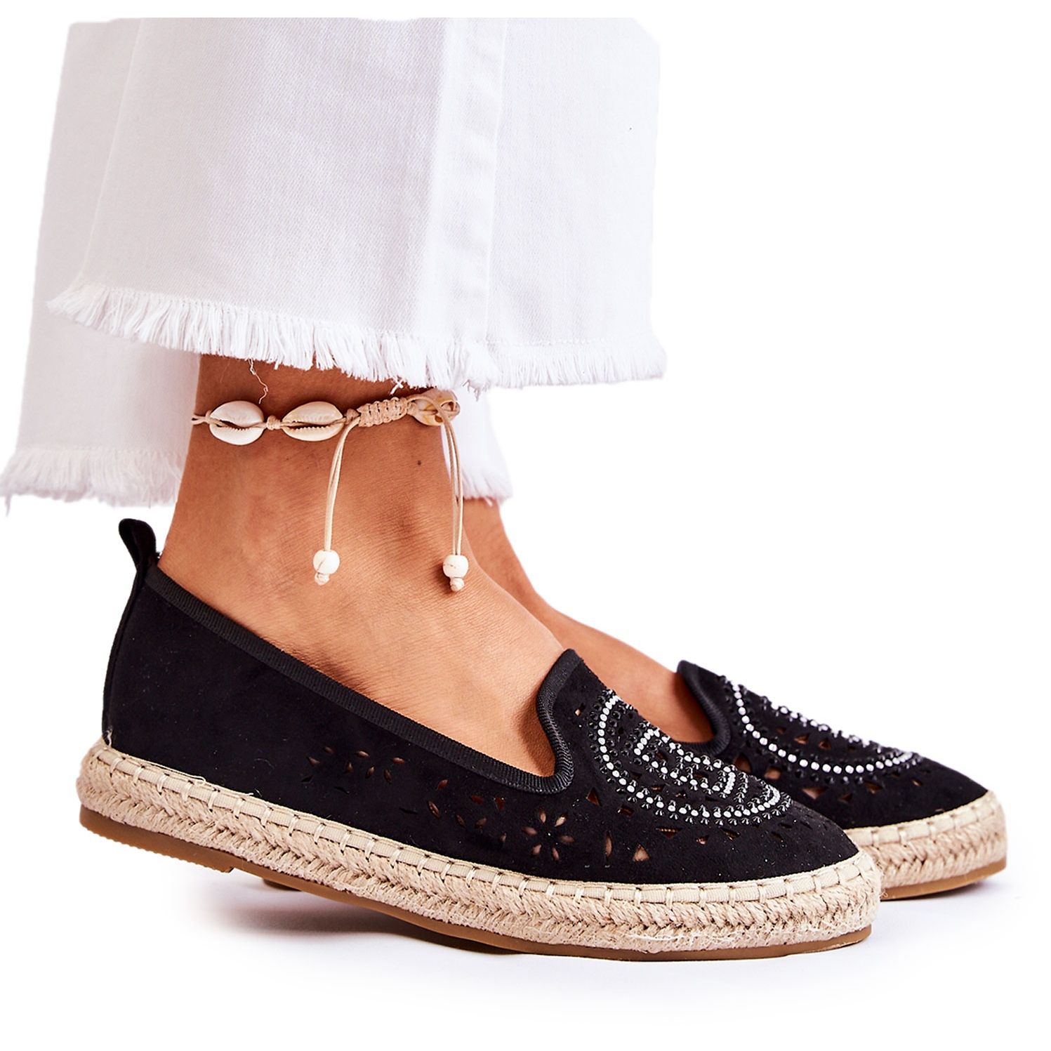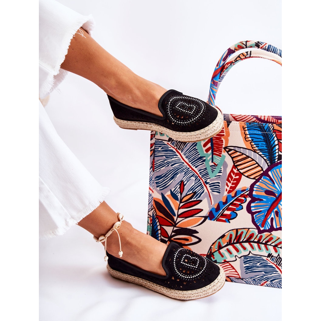Details: S.Barski Meredith Black Openwork Slip-on Women's Espadrilles