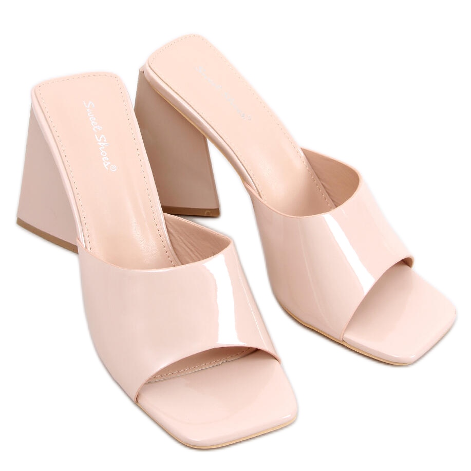 Discover a unique style with the Meryl Nude heeled mules in beige! These elegant women's mules with a heel height of 11 cm are the perfect combination of design and functionality. The extravagant patent finish attracts attention, while the designer wide heel and modern square sole make them an irreplaceable element of any fashionable wardrobe.