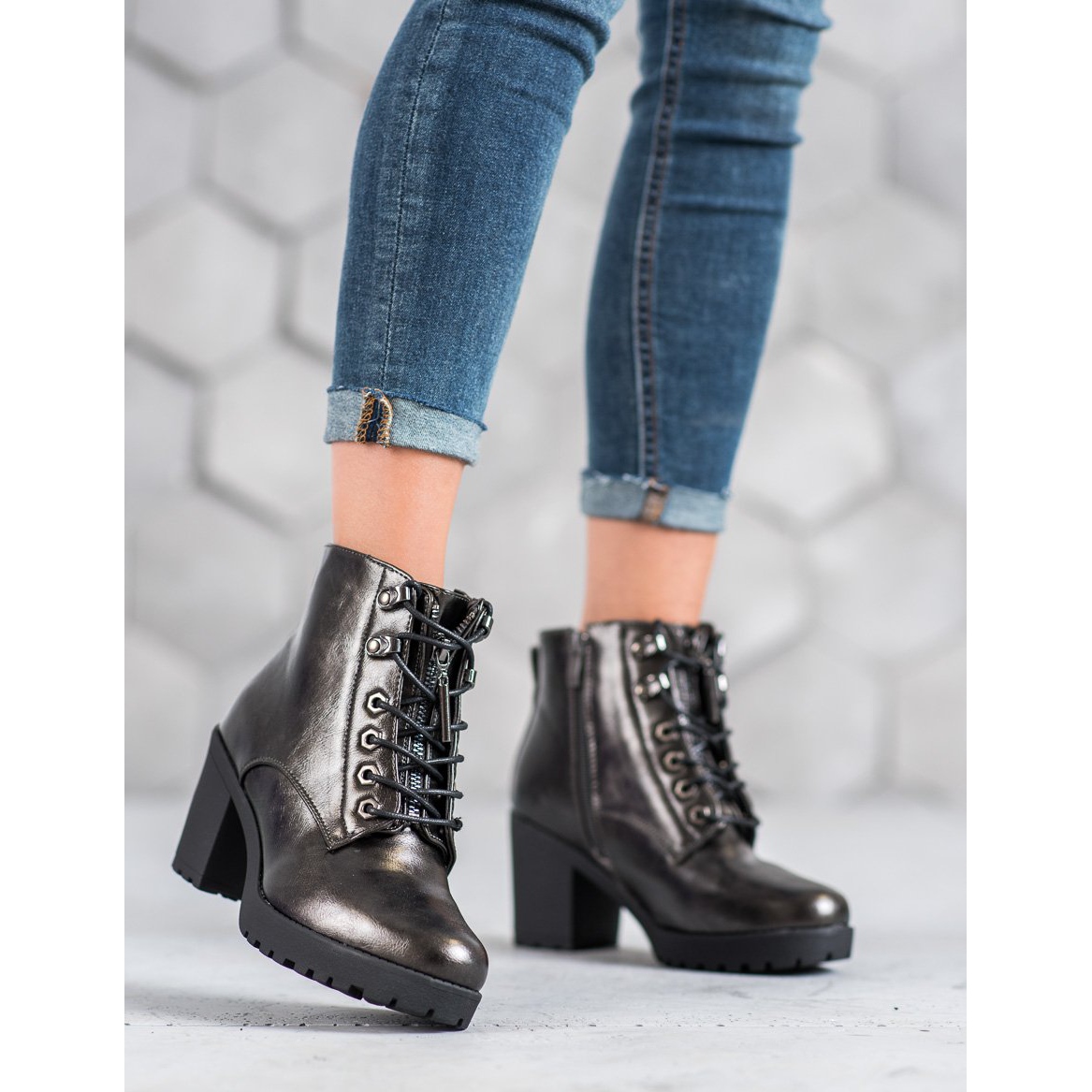 Discover the grey metallic ankle boots with a block heel from the renowned manufacturer M.Daszyński, which combine fashionable design with exceptional comfort. These elegant shoes are the perfect choice for every modern woman who wants to add a unique character to her style.