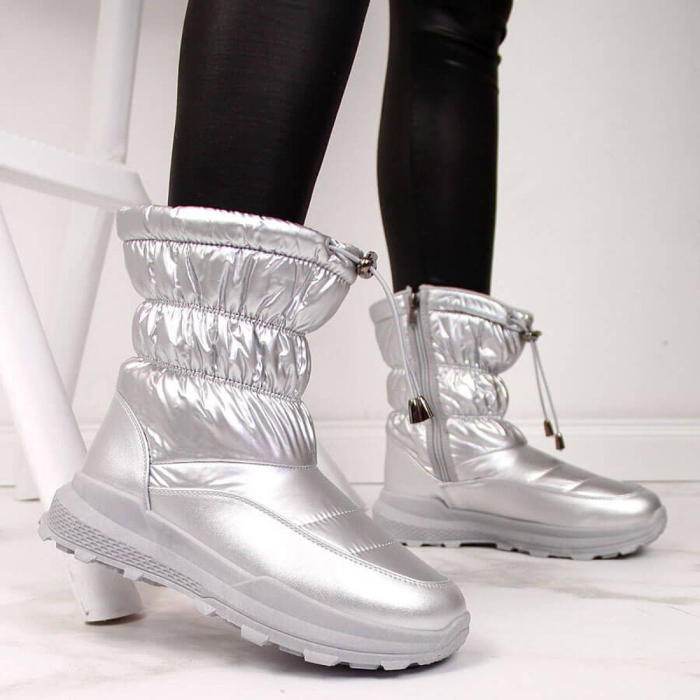 These trendy snow boots draw attention with their metallic finish, which will add shine to any style. Fastened with a zipper and laces, they offer a comfortable fit and certainty of wearing. The inside of the boots is equipped with a fur-lined lining, which guarantees warmth and comfort even on the coldest days.