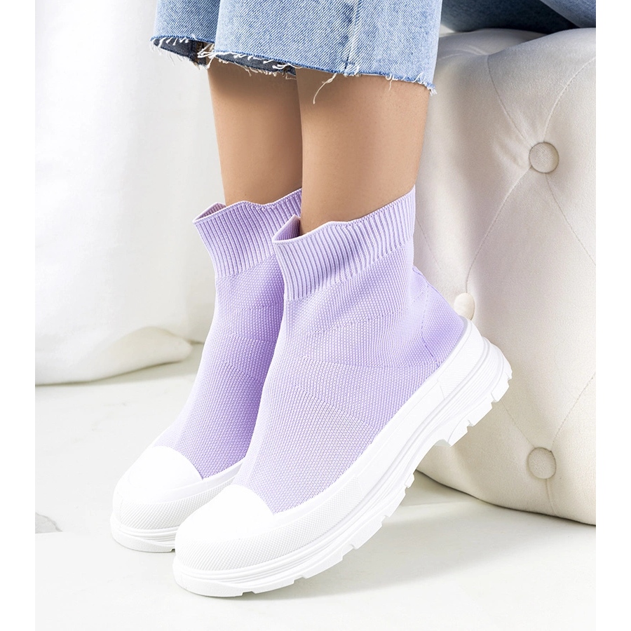 Miki modern sneakers are a proposal for women who value a fashionable, original look and comfort. The upper in the "socks" cut made of flexible fabric adapts to the foot, emphasizing the figure. A massive, white rubber sole adds character and ensures stability - it looks really divine! Slipped model, without an additional fastener, ideal for quick putting on every day and for a streetwear style.