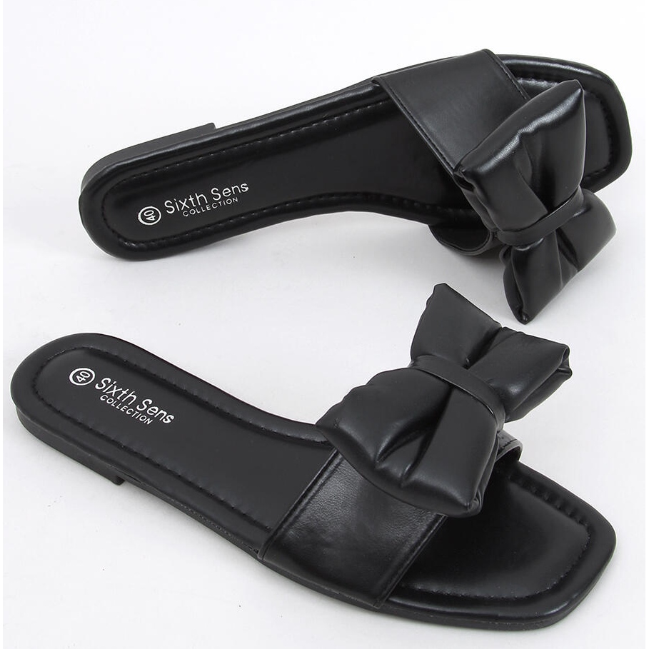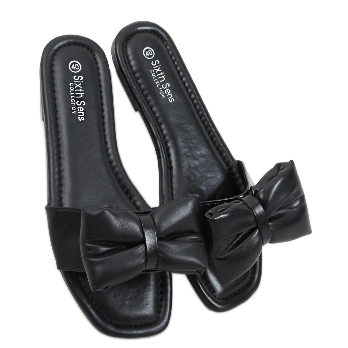 Mili Black Bow Flip-Flops are the perfect choice for women who want to combine style with comfort. These black, smooth women's flip-flops are distinguished by an elegant, square design and a seductive bow that attracts attention and adds a unique charm to the whole. Thanks to the flat heel, every step in these flip-flops will be light and comfortable.