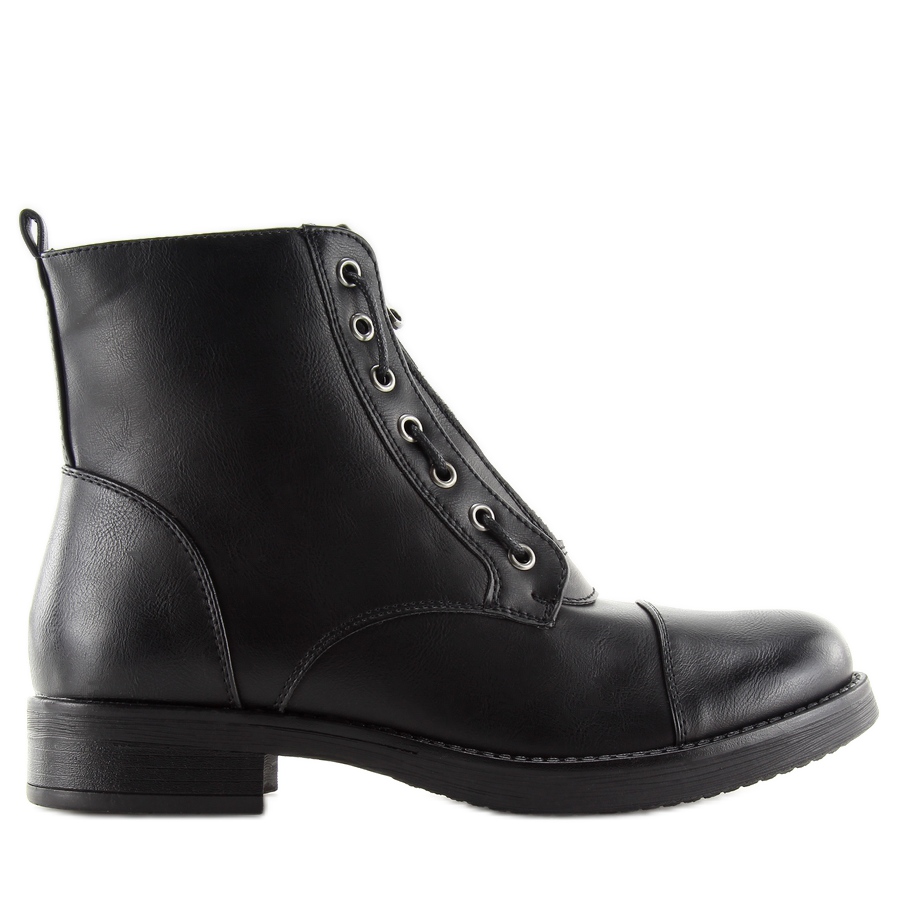 Military boots black B05 black are a great choice for women who value style and comfort. These unique military-style boots are characterized by a decorative zipper at the front, which gives them originality and a distinctive look. Thanks to the internal zipper, putting them on is quick and convenient, which makes them ideal for every day.