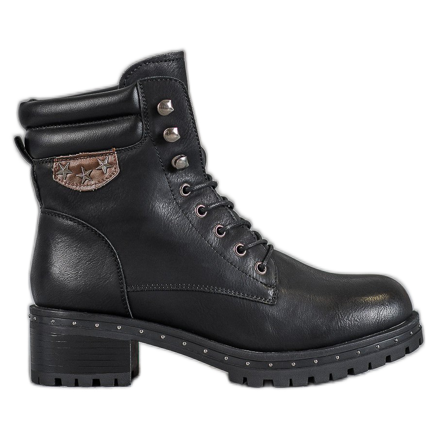 The synthetic sole with tread guarantees grip and safety on various surfaces, making them an ideal choice for everyday wear. SHELOVET ankle boots fit perfectly into the casual, military style that is currently in fashion, and their neutral, black color makes them easy to match with various styles.