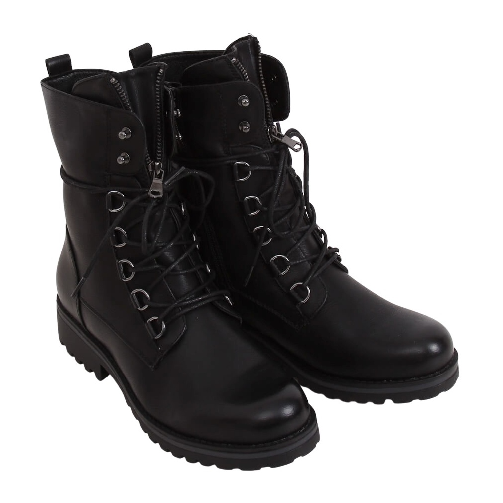 Military ankle boots black BZ66017-KB Black are a must-have in every fashion collection! These lace-up women's ankle boots combine comfort and style, perfectly matching current trends. Thanks to the timeless design on the sole with a protector, these shoes will provide you with both safety and a fashionable look.