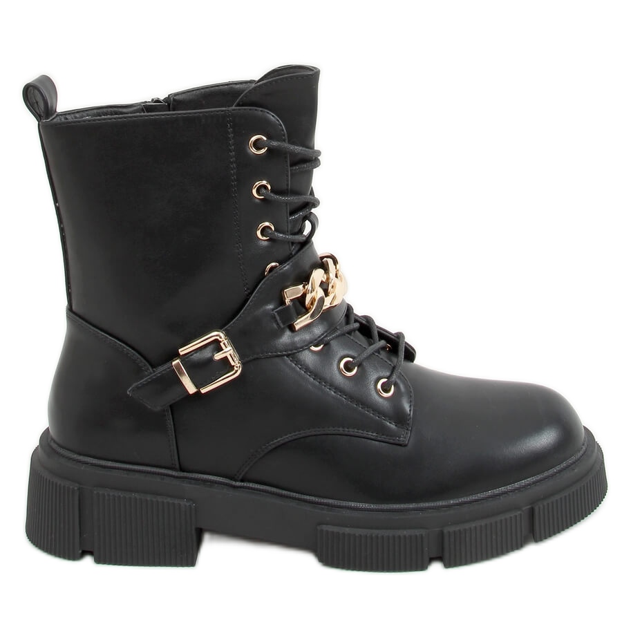 Inna marka Military boots with a chain Atlantis PU / BLACK